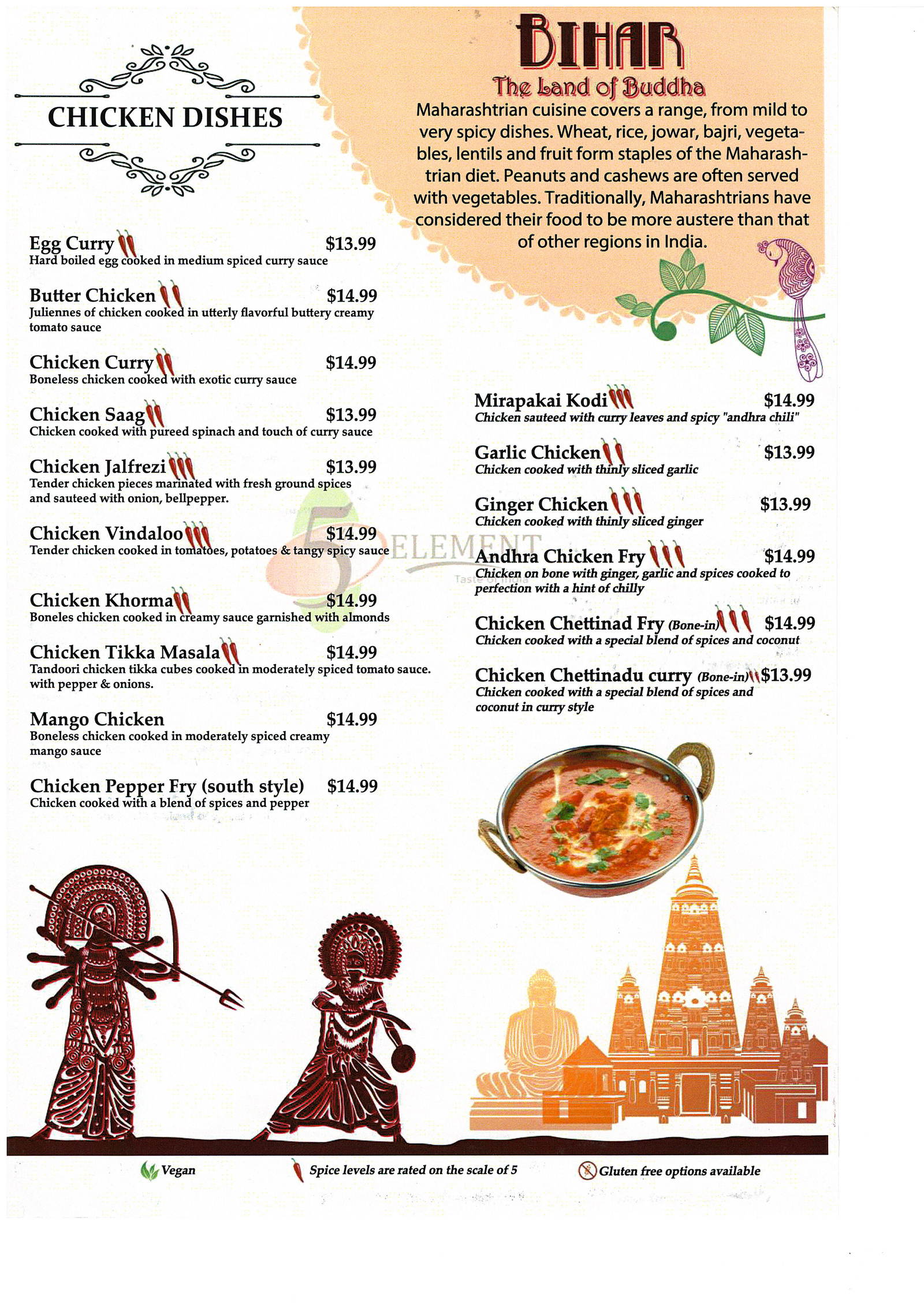 "Experience the thrill of Indo-Chinese fusion at 5th Element, where Szechuan spice meets traditional Indian flavors. A perfect adventure for bold taste explorers. "